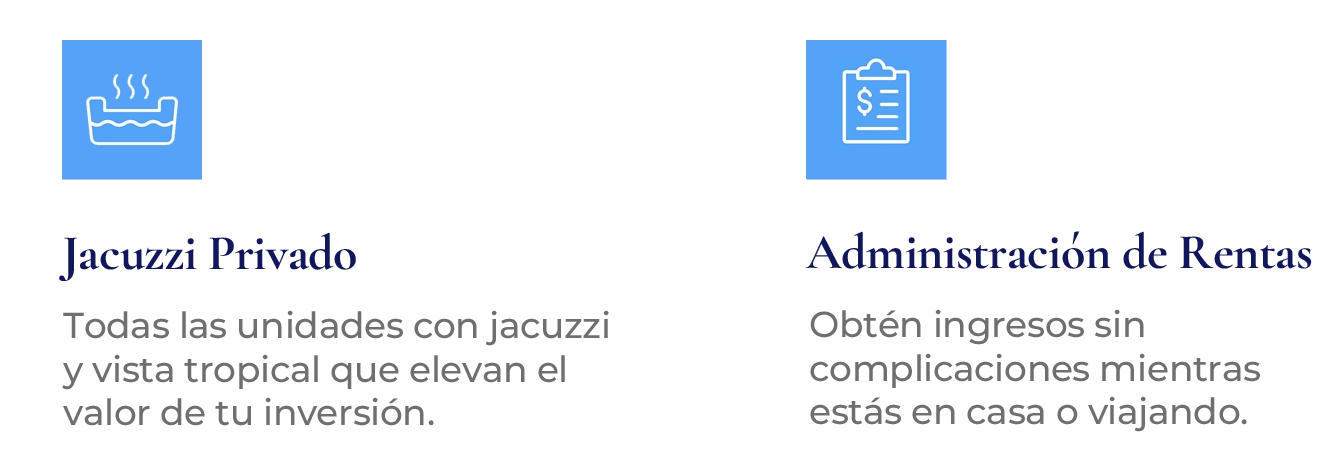 • Playa privada con camastros para uso exclusivo de propietarios.