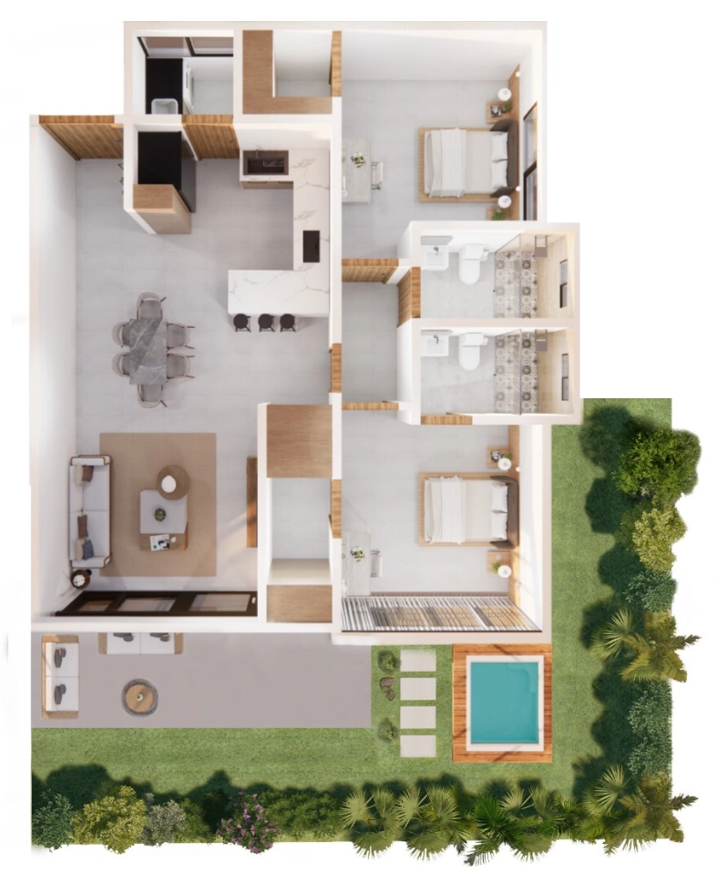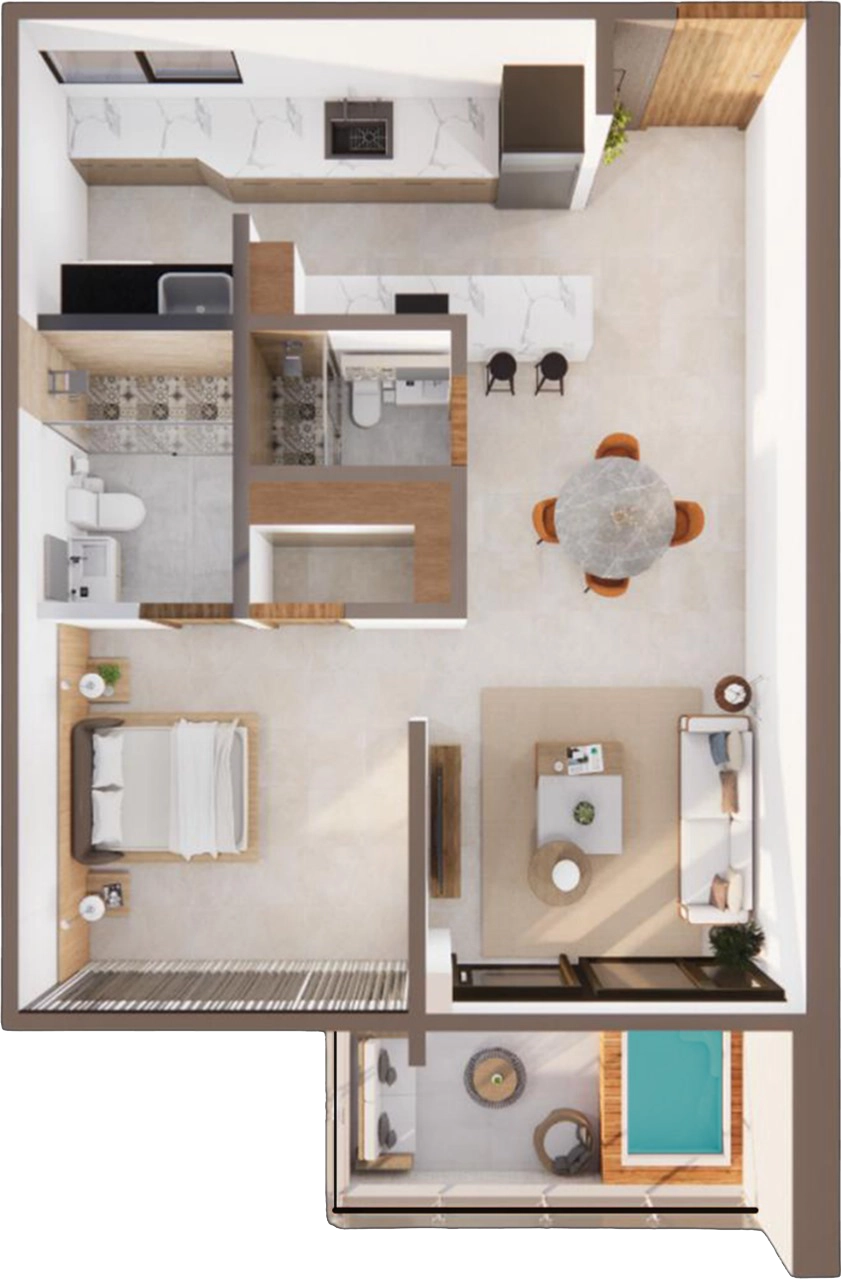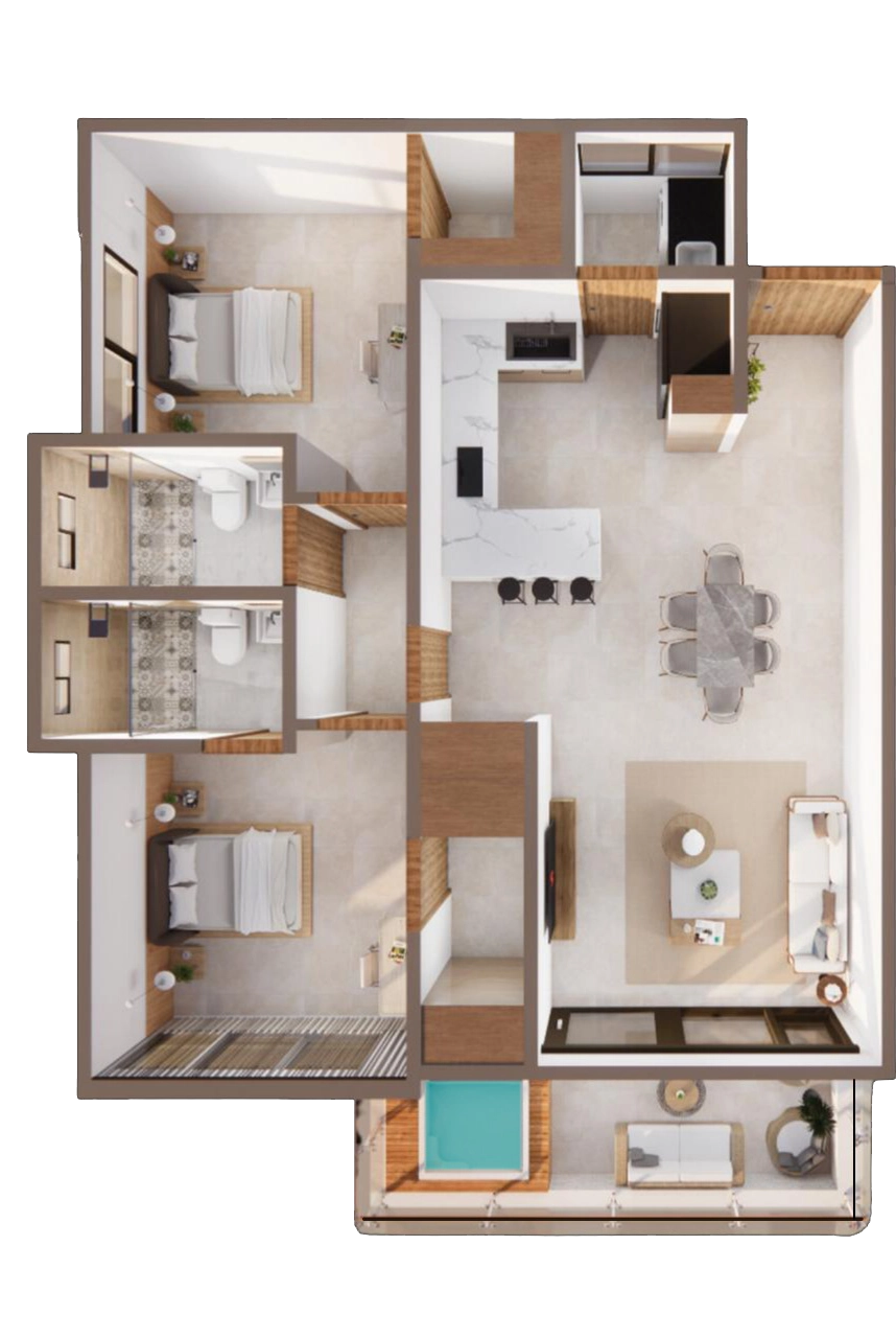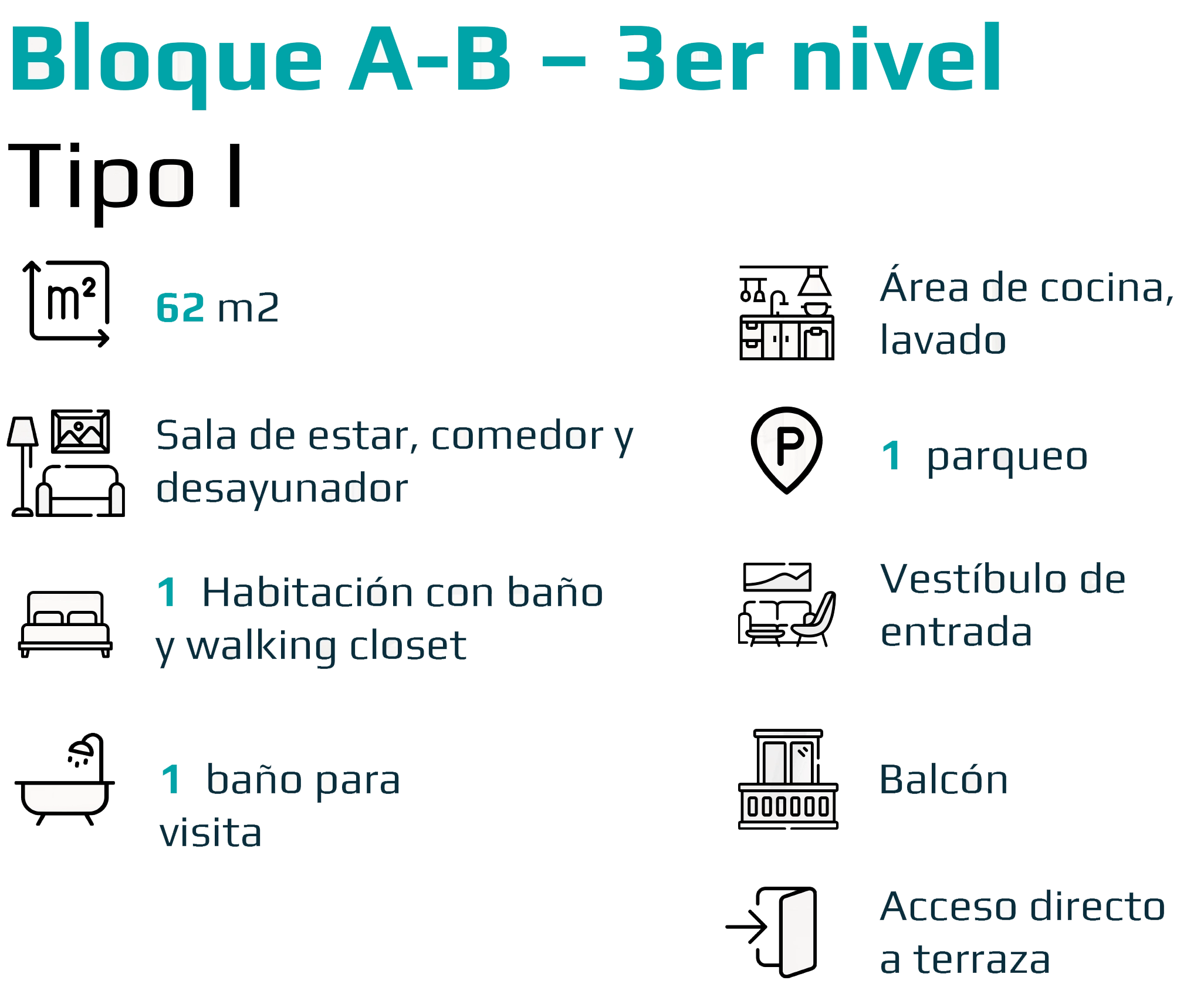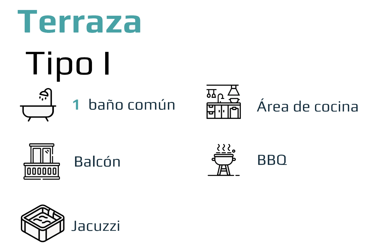 Desde 62 m² hasta 89 m², con terrazas, walking closets y opción a jacuzzi privado.